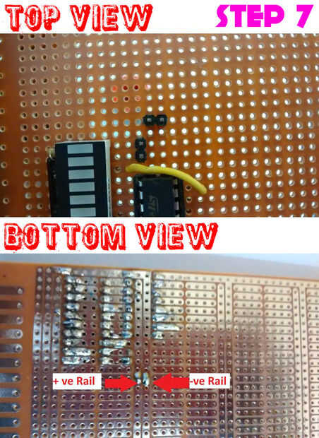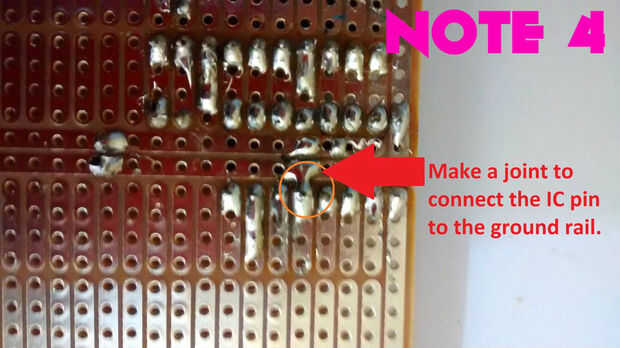 Soldar el pin que se muestra en el diagrama para el carril de tierra. Esto es más fácil que se conecta un cable de puente.
