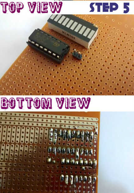 El puente tiene conectarse como se muestra en el diagrama de los conectores de un extremo está conectado al LED bar graph y el otro va al pin 15 del 74HC595.