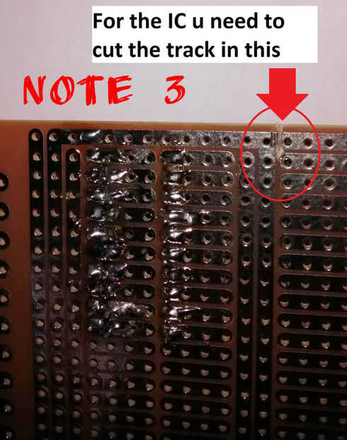 Antes de insertar el IC principal a realizar un corte utilizando un compás o una hoja. El corte puede ser comprobado utilizando el probador de continuidad en el multímetro.
