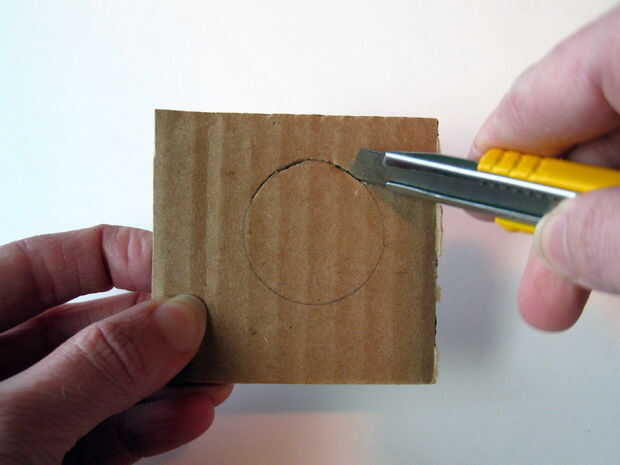 Use una navaja o un cuchillo exacto para cortar con cuidado el círculo que dibujó fuera de los marcos. Ver las fotos para más detalles.