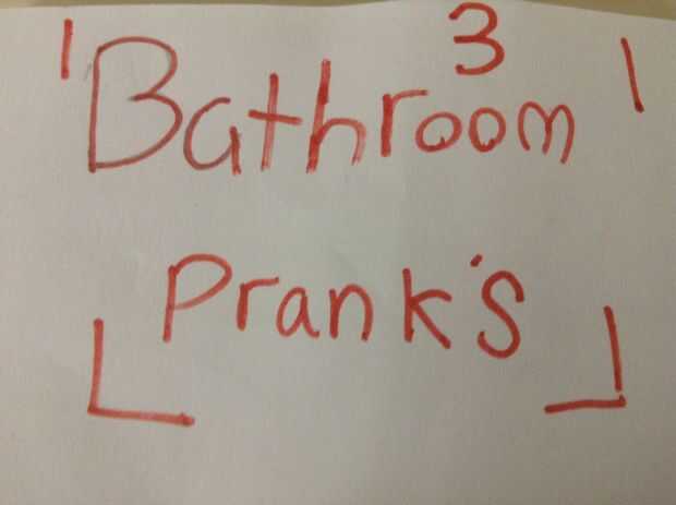 Aprendí esto de un compañero de trabajo que había miedo a su hija adolescente con él. Se trata de una simple broma que se puede hacer rápidamente y en cualquier lugar puede encontrar papel higiénico (o toallas de papel). Simplemente es dibujar una ar