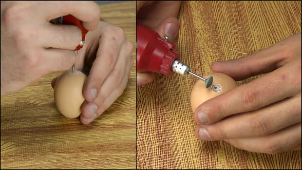 • Tome un huevo y perfore un agujero en el medio.