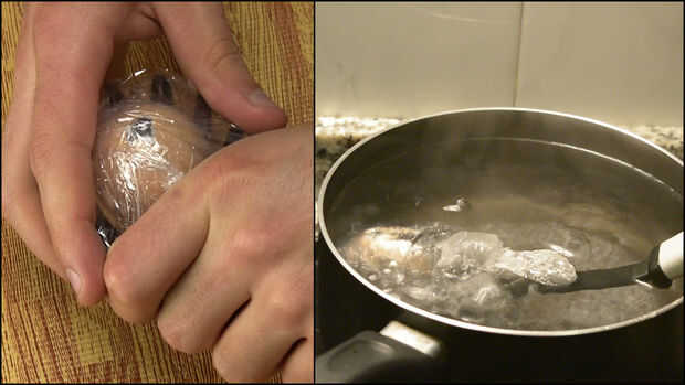 • Cubrir el huevo con un film transparente y suave hervirla.