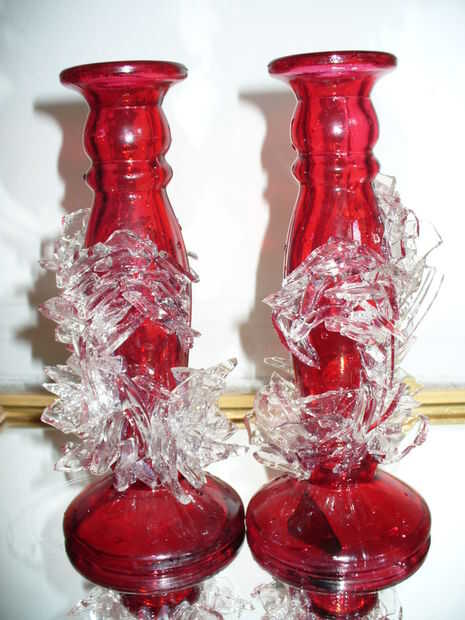 Literalmente se trataba de un proyecto de tres dólares! Yup! $3 dólares! Encontré este par de candelabros en un fondo de comercio local y naturalmente debido a mi amor de cristal, fue atraído por ellos! Hubo unas pocas virutas de la capa roja de pintura transparente que falta, pero eso no me impide!