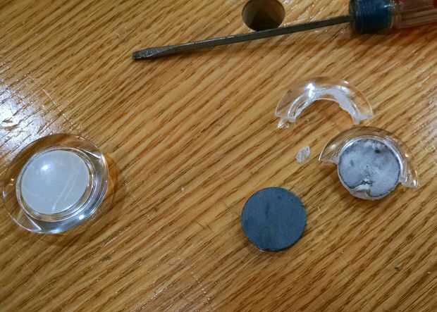 La forma más sencilla que se me ocurrió fue sólo para suavemente el plástico, con un martillo, hasta que podría ser forzada aparte a mano.