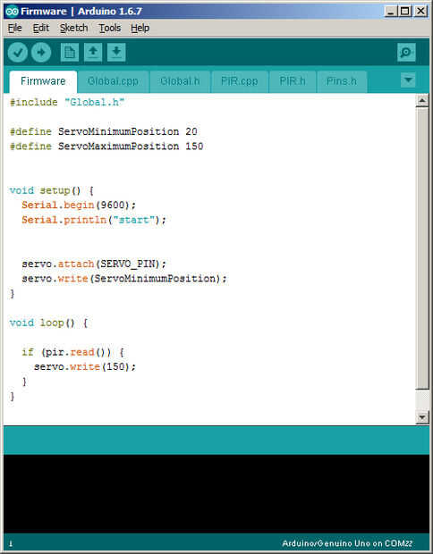 Conecte la placa Arduino al ordenador y cargar el código que aparece en la imagen adjunta en este paso o el código que recibió de Circuito.io.