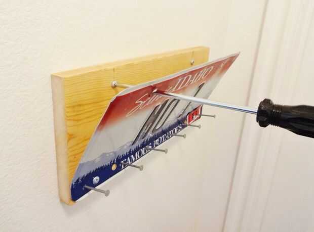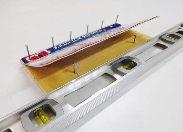 Para marcar para las ubicaciones de las escarpias, pongo los dos tornillos en su lugar como se muestra en la primera foto.