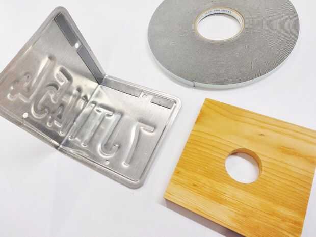 Para ayudar a colocar la madera y facilitar el pretaladrar los agujeros y apriete los tornillos, yo primero fija la madera a las placas con cinta de espuma doble cara (similar a estas cosas). Tenga en cuenta que esta cinta no es suficiente para mantener a largo plazo por sí mismo, sólo se utiliza para ayudar en conseguir los tornillos en su lugar.