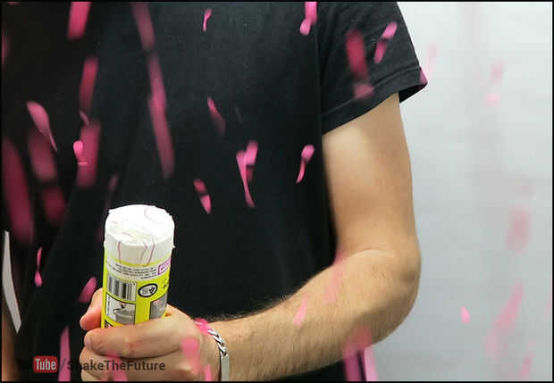 Un poco de aire y el émbolo va a tirar hacia fuera con un "golpe" y una nube de confeti.