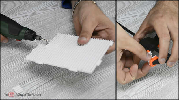 Corté dos piezas de perlas peg-board y pegado a la abrazadera.