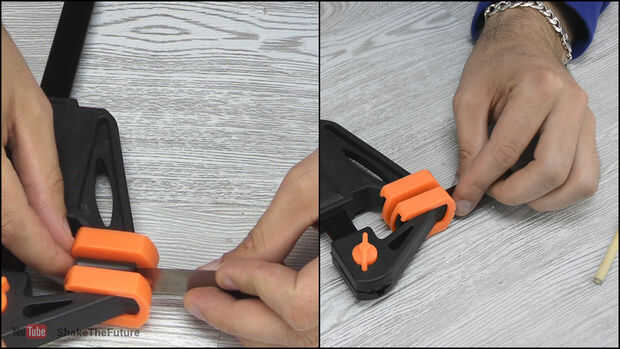 Luego inserta una hoja y aprieta la abrazadera aún más.
