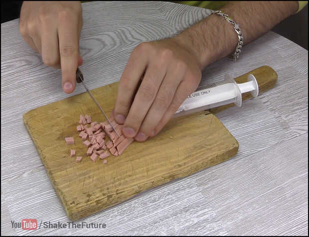 Si necesita cortar una salchicha para la ensalada, de esta manera será mucho más rápido.