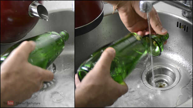 Anotó la botella y usa agua caliente y fría para dividirlo.