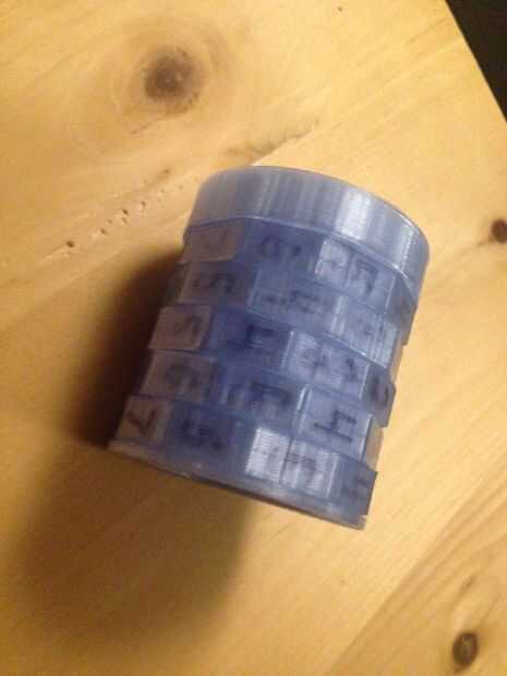 modelo de cartón de un Cryptex. Este es un modelo de 5 carta que permite crear y configurar tu propia combinación.Usted ha visto este tipo de dispositivos en las películas de ahora construir su propio. Tiempo medio de montaje puede ser hasta 7 horas