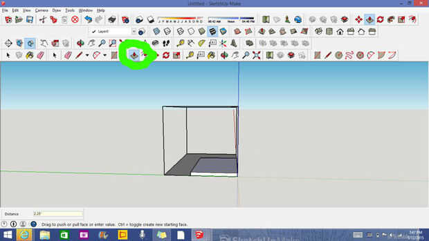 Ahora debe presionar el botón de push-pull (he circundado en la foto como yo lo hice la última vez, que hacer esto cada vez cuando digo presionar algo) y haga clic en el centro del triángulo y que arrastre eres ratón encima. Que al azar tipo 2.25" y que presione Entrar.