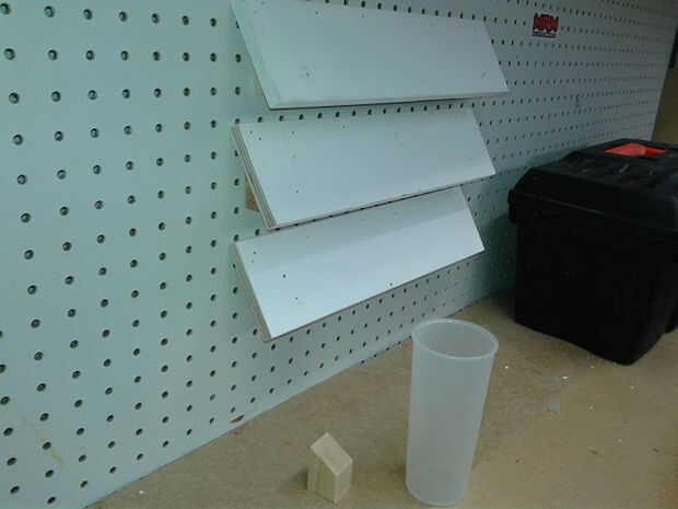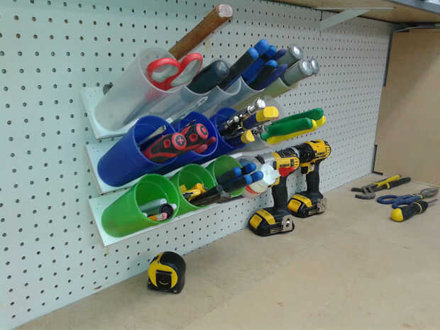 Hay algunas ideas para cortar en ángulo de algunos alcantarillados las pipas del ABS. Encontrado eso él se toma tiempo de me figureout cómo llevar a cabo en lugar de cortarlos o pegados en la pared... Para herramientas pequeñas, como destornilladores, vasos de plástico largos y finos son el mejor camino a seguir que encontré. ¡ Disfrute!
