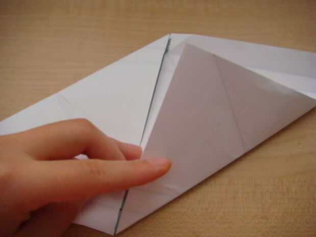 Doble el papel por la mitad verticalmente... o doblar estilo hamburguesa, si desea Abra el documento. Doblar una esquina a lo largo del pliegue. Vuelta el papel y hacer lo mismo con la otra esquina (Las fotos explican mejor que mis palabras o.o)