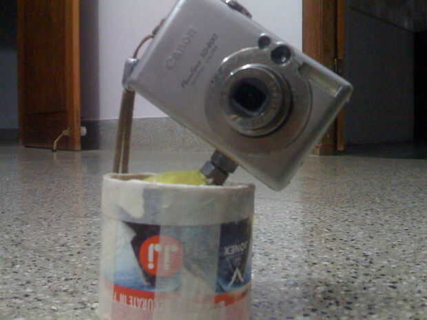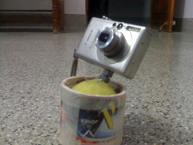 Si usted nota que el la bola se mueve demasiado libremente dentro del tubo, usted podría intentar taladrar un agujero en el lado del tubo y pegar una tuerca en él. Inserte un perno se puede apretar o aflojar según la tensión que se desea. En mi caso no era necesario ya que la parte superior ofrece suficiente fricción para mantenerlo en su lugar una vez que la cámara está conectada.