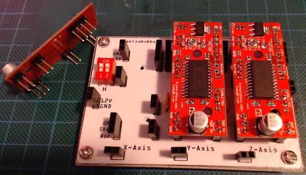 Rompieron las patillas de la cabecera en sus tamaños más pequeños (1 x 4 1 x 3 y 4 x 2) y colocados en los zócalos de encabezado en el tablero de la compañía y luego montar tableros EasyDriver (x3) en sus clavijas.