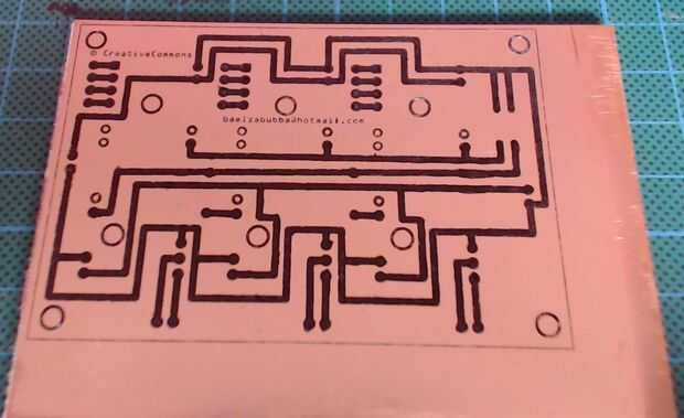 Este método se logra imprimir su diseño de circuito sobre papel normal con una impresora láser. Puede mejorar sus posibilidades de éxito al aumentar la densidad de impresión en la impresora (página siguiente).