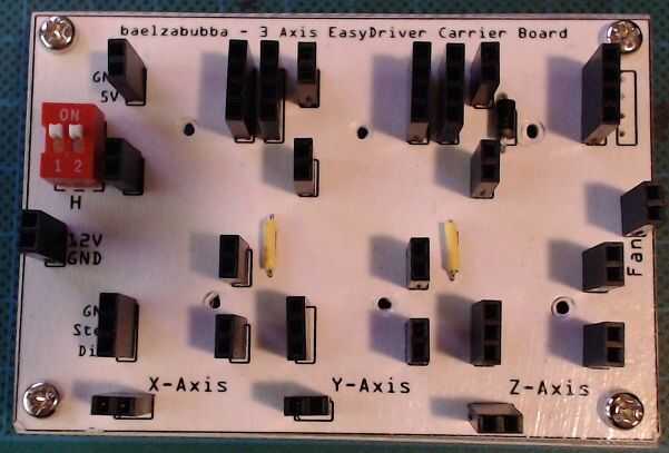 He quitado la salida de 5V de la X y el eje Y y poner un diodo entre la salida de 5V y el ventilador en el eje Z. Esto se hizo para proteger al conductor fácil de cualquier tendencia inversa actual (no probable, pero mejor estar seguro). Esto simplifica el diseño un poco y hace mucho más fáciles de hacer (menos a la soldadura).