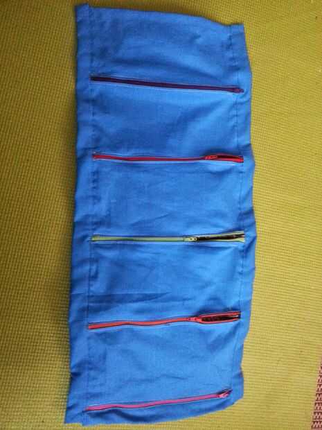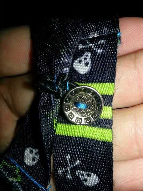 Cortar un trozo de la tela azul de 2" de ancho y la longitud de la pieza hizo en el paso anterior. La dimensión 2" se puede cambiar dependiendo de lo grande que es el material del lazo.