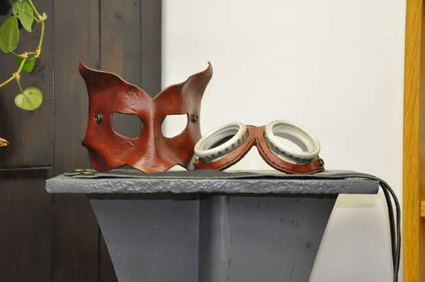 Cortar un par de correas de cuero flexible y colocar un broche de presión a cada uno. O hacer dos juegos de correas para que tu amigo puede llevar una sola pieza mientras que llevas la otra!