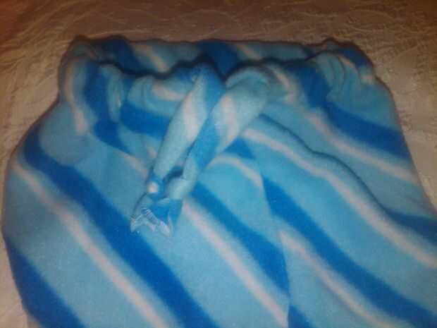 Una vez que la tira a través el dobladillo, un nudo en cada extremo para que el lazo no se deslice hacia el dobladillo.