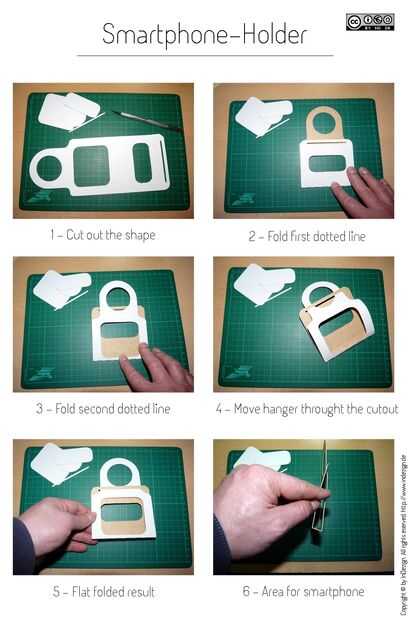 Simplemente imprima el archivo PDF adjunto en una cartulina y utilice la explicación paso a paso para crear tu propio soporte de smartphone.