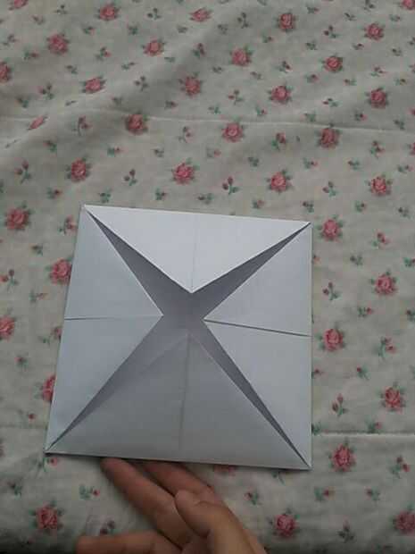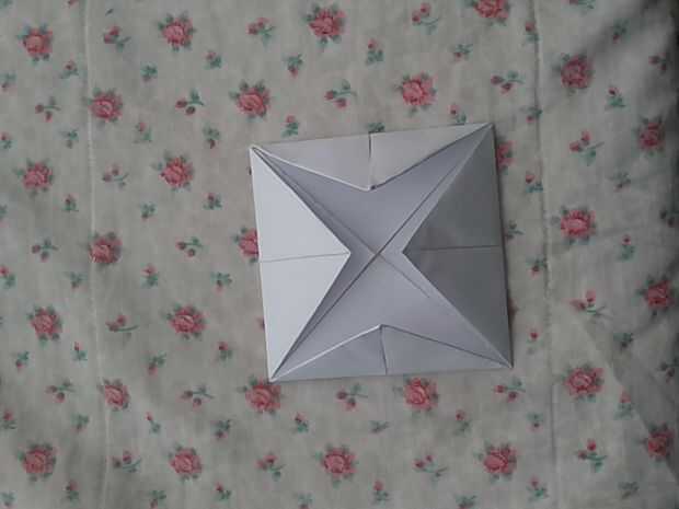 repetir completamente el paso no. 3 plegable. desenrollarán cuadrado y doblar las esquinas al centro.