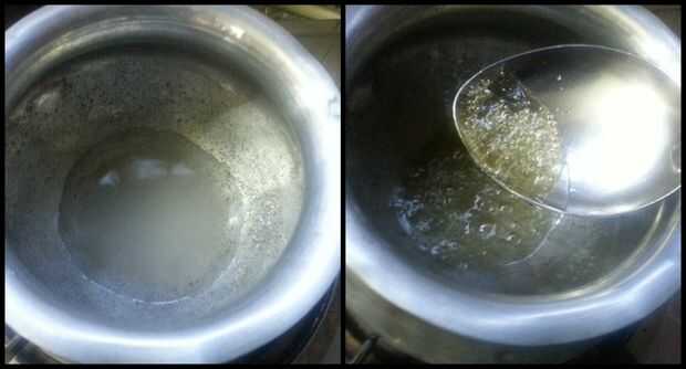 En una olla agregar 1 cucharada de azúcar y 2 cucharadas de agua. Revolver hasta que el azúcar se disuelva y llevar la mezcla a ebullición.