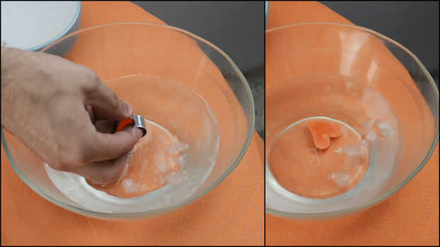 Después de cortar la forma, había refrescado abajo en un recipiente de agua fría y hielo.