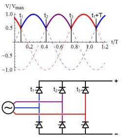 utilizado, y el circuito de nuevo tiene un número de pulso de seis. Por esta razón, es también comúnmente como un puente de seis pulsos.