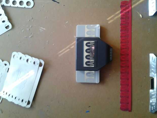Usar tus golpe a golpe 2 12 pulgadas las tiras de papel de sus coordinación pedazos de cartulina. Usé el punzón de flores Dimensional EK herramientas clavel. Este golpe particular se perfore 4 pétalos. Debe alinearse el último pétalo para mantenerla como una franja de 12 pulgadas cohesivo. Tenga cuidado al deslizar el papel perforado hacia fuera de la herramienta de perforación. Papeles más ligeros tienen tendencia a enredarse en los radios de la herramienta. Usted necesitará 2 tiras de 12 pulgadas para cada flor que usted quiere hacer.