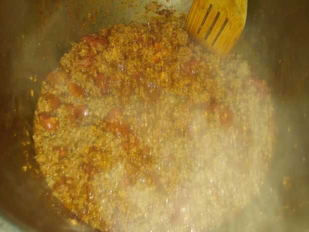 mi Chile de toda la familia le gusta, algunos como picante, algunos no. Mi 16 yo hijo no normalmente come verduras así que esto es una forma de conseguir esta receta que se me ocurrió mientras miraba en nuestra despensa para ver lo que había en él. G