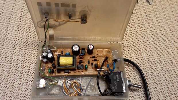-fijar tablero de fuente de alimentación con pegamento caliente dentro de su caja