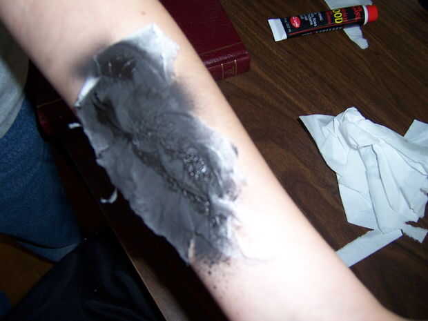 Ayuda a proteger las partes de su brazo que no forman parte de la quemadura para evitar la sobre pulverización.