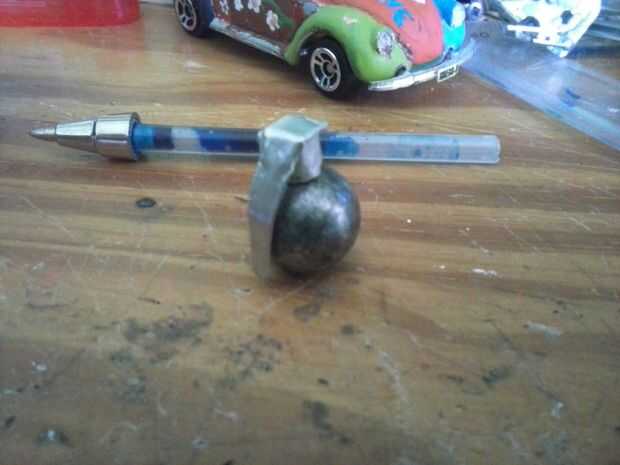 La parte principal de ella es el rodamiento de bolitas, que se puede encontrar en muchos lugares. No tomo ninguna foto durante su construcción (lo siento) pero realmente no necesita ninguna porque es tan sencillo. Aparte del rodamiento de bolitas que necesita 4 piezas; un pin (doblar el alambre en una bobina pequeña y clip un círculo apagado), el fusible (abrigo puede de una tira de metal en un cilindro) una cartilla (doblar otra pequeña franja de lata metal en una especie de superior e inferior-menos cubo que se ajusta perfectamente alrededor del cilindro) y el gatillo (otro pedazo de lata de la curva a una especie de triángulo isósceles alargada y luego doblar la mayor parte de abajo dejando una plaza para cubrir la parte superior de la cartilla y la curva la pieza doblada abajo sobre a medio camino abajo a un ángulo por lo que parece real)