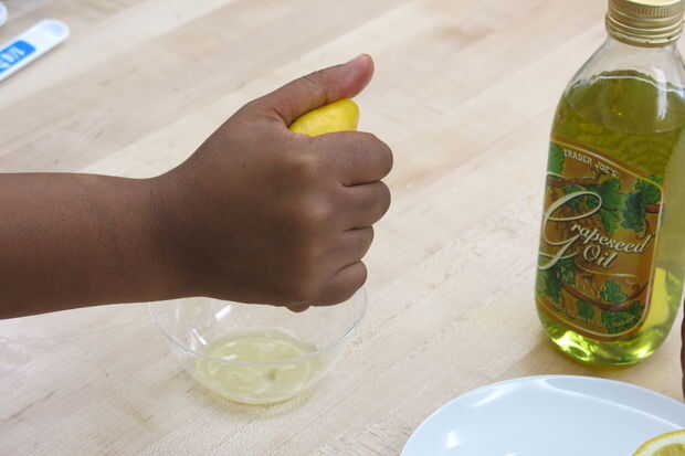 2. exprimir una mitad del limón en el recipiente y mezcla
