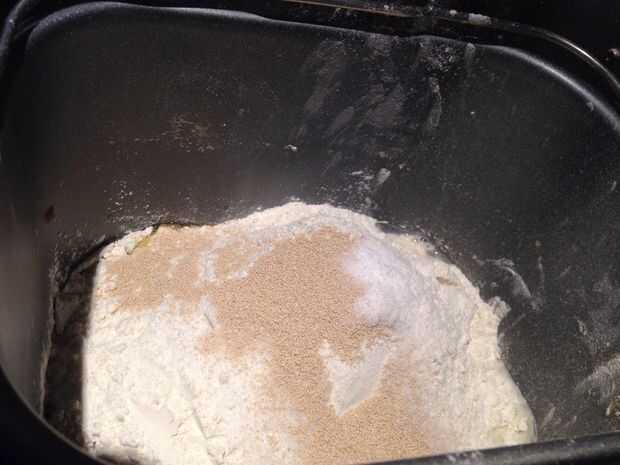 Añadir ingredientes, líquidos en primer lugar, a su máquina de pan y luego en configuración (o simplemente pasta de ajuste)la masa de pizza. Mi máquina tiene una configuración de masa de pizza de 55 minutos, tan alrededor 10-15 minutos precalentar el horno a 425 y línea una hoja pan (nuestra pizza piedra rompió un tiempo atrás) con papel engrasado de papel o pergamino.