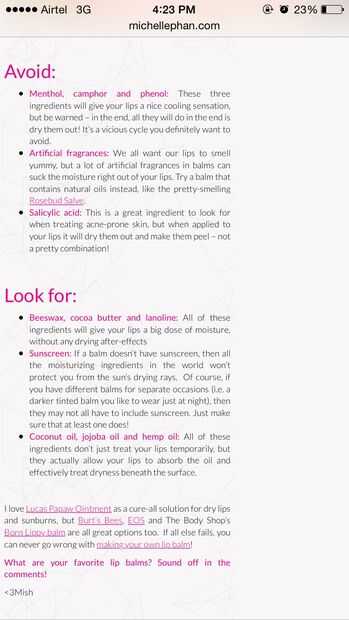 Hasta que leí un artículo sobre ingredientes a evitar en labiales y a buscar los ingredientes.