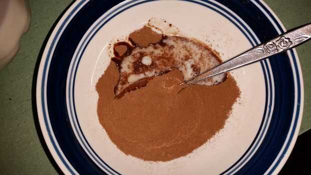 Añadir una cantidad pequeña de leche. Tal vez como 1 onza para comenzar. Revuelva con la misma cuchara que recogió el PB con (menos platos duh).