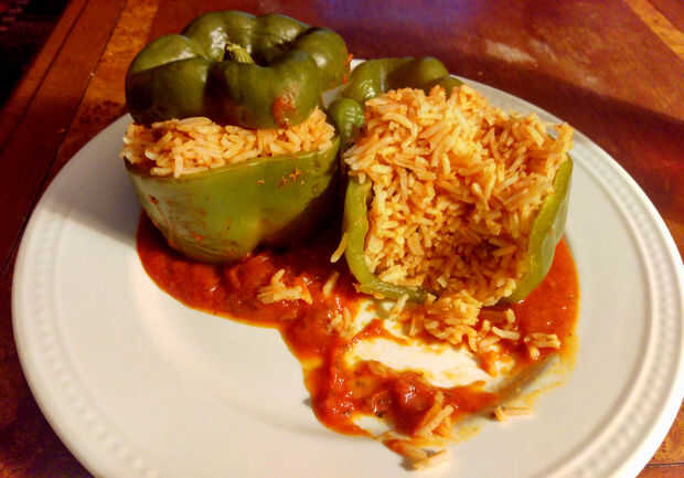 estos fueron hechos como un estímulo de la cosa de momento, mi novia estaba merodeando por la cocina para comida y vino sobre pimientos, sugirió pimientos rellenos y procedió a hacerlos.Estos fueron hechos de lo que pasó a ser en la cocina y totalmen
