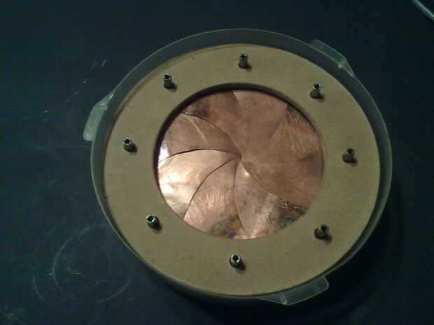 ¡Vale! así que hoy hice un nuevo conjunto de hojas para el iris, esta vez hizo de una muy fina (0,1 mm) hoja de cobre.
