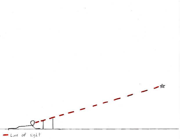 -Conducir un segundo palo más alto en el suelo detrás de él para que alineen las puntas de los palillos con una estrella brillante