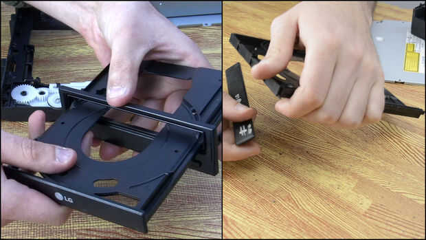 Si usted necesita mantener las piezas para el CD-ROM ver real, tratar de hacerlos más pequeños por aserrado, romper etc.