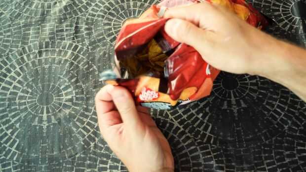 Tome una bolsa regular de fichas y abrir en la forma ordinaria.
