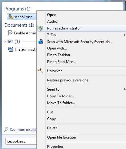 Buscar "cuentas: estado de la cuenta de administrador" desde el panel de la derecha.