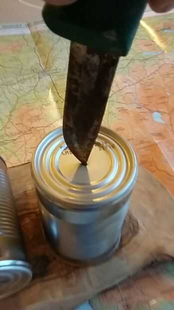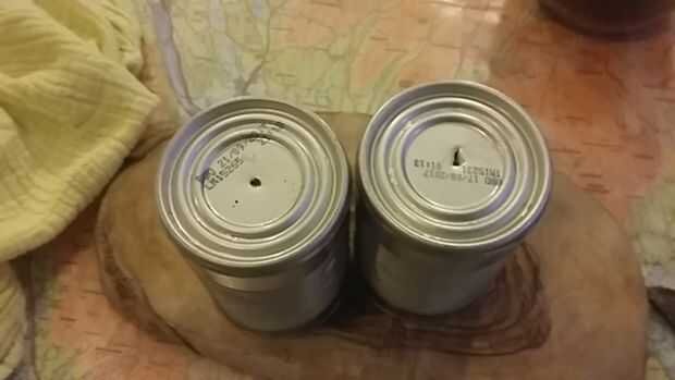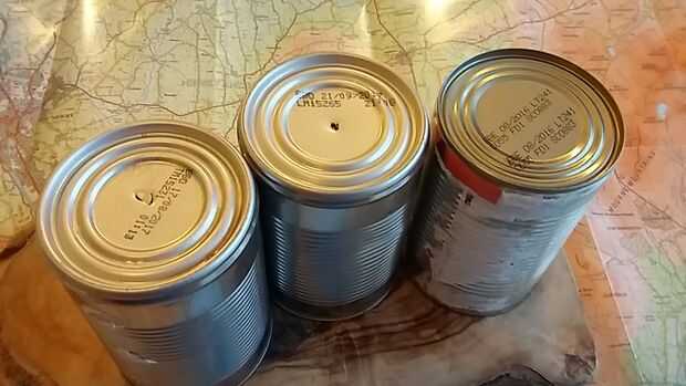 En primer lugar, hacer un pequeño agujero en la parte inferior de una de sus latas. Este va a ser el depósito de agua caliente, por lo que el agujero tiene que ser pequeño que quieras el agua caliente a gotear. Usted siempre puede hacer un pequeño agujero más grande pero no tan es fácil hacer un agujero grande pequeño!