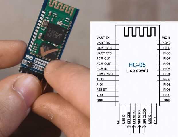 Si nos fijamos en el perno de la HC-05, dará cuenta de que la colocación de pines es diferente de la RN-42. Para el HC-05, los pines SPI están convenientemente agrupados en la parte inferior.